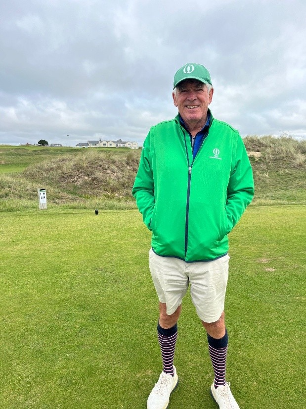 Here we see Nigel, the only one we assumed with family connections to Newcastle, given the inclement overcast weather, wearing shorts and looking very snappy in his ‘Open Golf’ Marshall’s attire.